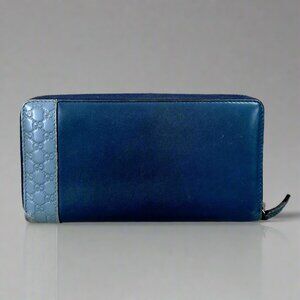 Add a little luxe to your life with this vintage wallet from Gucci. Made of super soft calfskin, this blue wallet features a logo-embossed light blue accent strip. Zippered closure and plenty of room for all your cards, cash, coins, and papers. In great condition, with some wear on the corners. I am a top-rated seller and ship quickly!