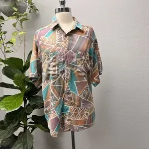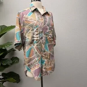 Vintage Guess 1990's USA Pastel Abstract Shirt Junior Womens Size 1 Button Front