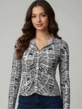 Vintage Guess 1990's USA Pastel Abstract Shirt Junior Womens Size 1 / XS Button Front