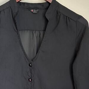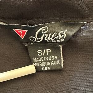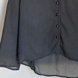 Vintage Guess 90s Sheer Black Top Button Up Roll Tab Sleeve Y2K 2000s USA Made