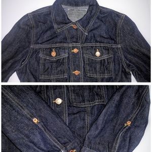 Awesome 1990s Guess American Tradition dark indigo denim jacket.