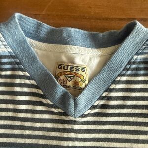 Vintage Guess Blue Striped V-Neck Tee Boys' L 16-18