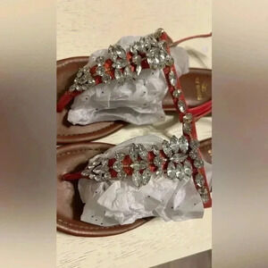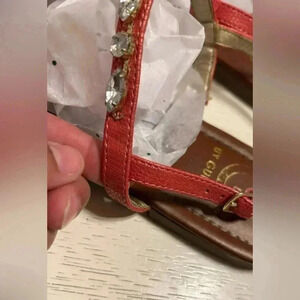 Vintage Guess By Guess Londean Womens Size 10 M Orange T-strap Flat Sandals