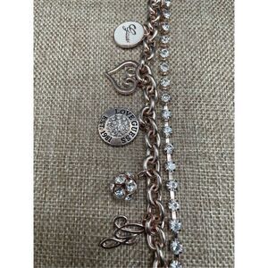 Vintage Guess Charmed Bracelet Double-strand Gold-tone Crystal, Rhinestones, Hearts 7 1/2"