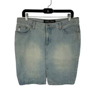 Vintage Guess Denim Midi Skirt. Light Wash. Size 32 Waist, 22 Inch Length.