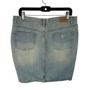 Vintage Guess Denim Midi Skirt Light Wash Size 32 Womens 22 Inch Length Artsy