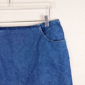 Dark wash denim skirt Size 32 waist Gently preowned with no flaws Mini skirt length 32" waist 15.5 length F7