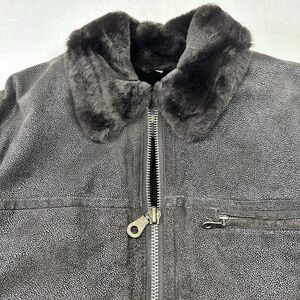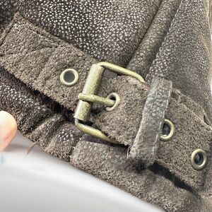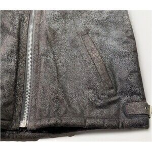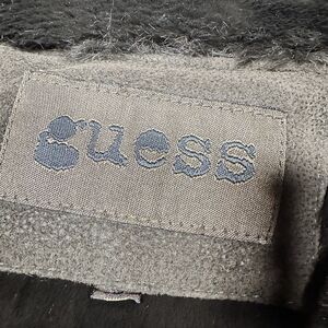 Vintage Guess Faux Shearling Aviator Jacket – Brown Textured Suede Finish