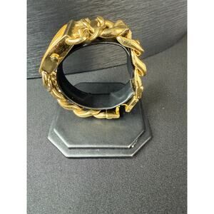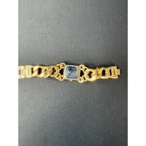 Lovely and heavy statement Goldtone chain bracelet watch by Guess with square pearlscent face. Minor wear to the bracelet and bezel. No damage to the crystal. 7” circumference when closed. Just needs a battery. Priced accordingly.