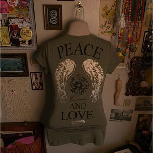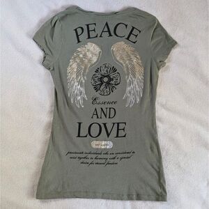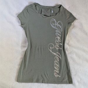 Vintage Guess Graphic T-Shirt Women's Small Green Sparkly Wings Y2K Logo