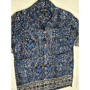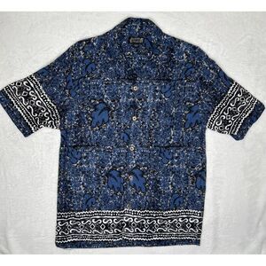 Vintage Guess Hawaiian Shirt Men’s Large Blue Button Up Floral Short Sleeve Y2K