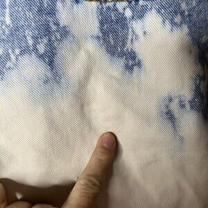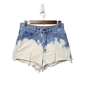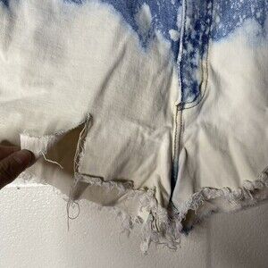 Pre owned.. shorts have been bleached and cut up the front on both sides. Some light spots on front and back. Could easily be re bleached.