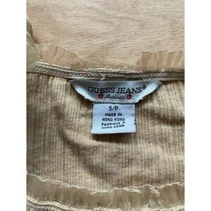 This top is perfect for those who love vintage fashion and want to add a touch of nostalgia to their outfits. Pair it with jeans, skirts, or shorts for a variety of stylish looks. Don't miss out on owning this rare and beautiful vintage Guess top!