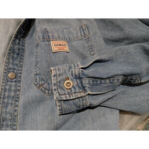 Vintage Guess Jeans Mens Blue Denim Snap Button Shirt Sz S 163F8 Western Flaw