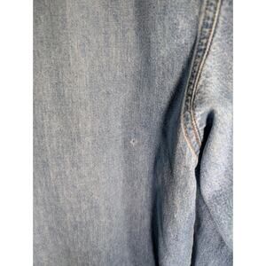 Vintage Guess Jeans Mens Blue Denim Snap Button Shirt 163F8 Sz S Western Flaw. Shirt has a tiny hole in the back of the shirt that can be seen in up close photo. There is also a mark on the sleeve that can be seen. Please unsure to look over photos and ask any questions prior to purchasing.