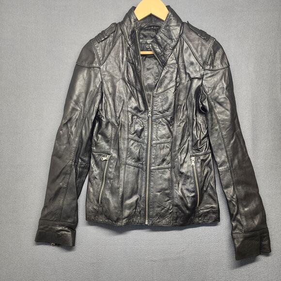 Vintage Guess Leather Jacket Womens Small Black Classic Moto Biker