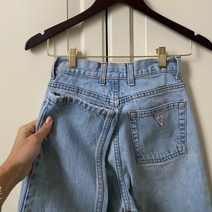 Straight leg. Light blue wash. Subtle stain on lower leg, can be dry cleaned.