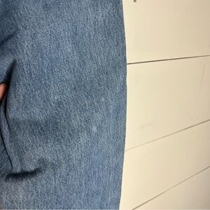 Super high-rise jeans featuring a light-medium blue wash, slim tapered leg, and cute Guess patch detailing on the back pocket.
