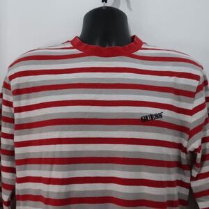 Vintage Guess Original Men's Embroidered Logo Red White Stripe - Size XS