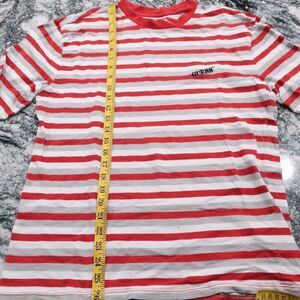 Up for sale is a vintage Guess Original Men's shirt featuring a stylish red and white stripe design. This preowned piece showcases the iconic embroidered Guess logo, making it a perfect addition to any fashion-forward wardrobe.