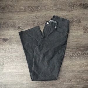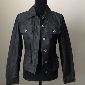 Black Denim jacket. Looks dark grey. Medium jacket. Size 28 bootcut pants. Like new condition.