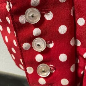 Vintage Guess Red White Polka Dot Collared Button Up Blouse Size M