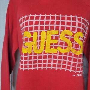 Vintage Guess Red Yellow Logo Crosshatch Sweater Shirt