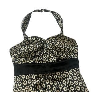 VTG Y2K Guess Satin & Lace Cheetah Print Belted Halter Mini Dress