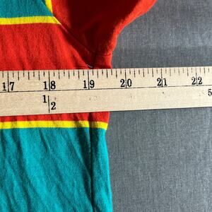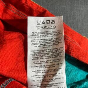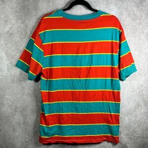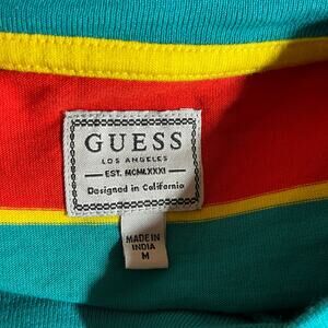 Vintage Guess Shirt Mens Medium Blue Orange Striped Short Sleeve Crew Neck 90s Y2K Streetwear