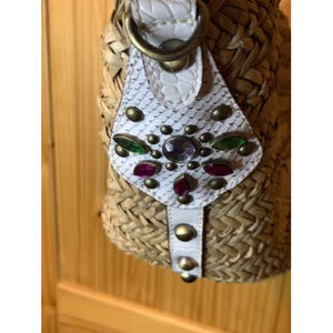 Vintage Guess Straw Woven Satchel Beach Tote Handbag Purse ,Bling,gems, Summer.