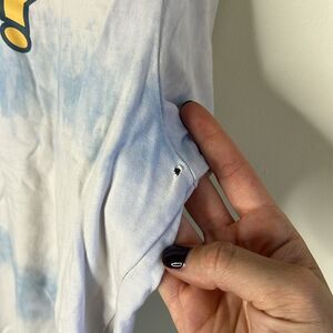 Some signs of wear and discoloration throughout, which is hard to notice since it is tie dye!!