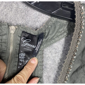 Vintage Guess Top Womens Small Grey White Tank Racerback Studded Trim Lot 2
