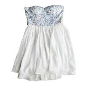 Vintage Guess White Strapless Floral Mini Dress size 6