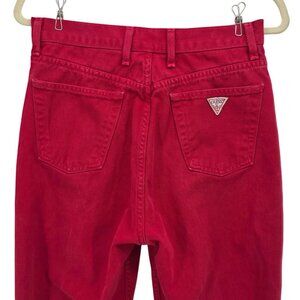 Vintage Guess Womens 31 Jeans High Rise Red Denim Barrel Mom Made In USA 1990s Retro Tapered