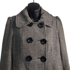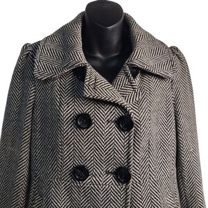 Vintage Guess Women's Pea Coat Black White Chevron Double Breasted Coat Size M