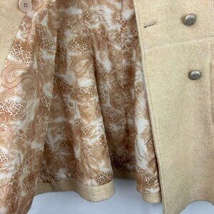 Vintage Guess Women's S Peacoat Cream Wool Blend Double Breasted Fit Flare Coat