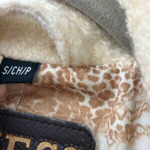 The Vintage Guess Women's S Peacoat in Cream is a classic mid-length coat made of a wool blend with a polyester lining. This double-breasted fit flare coat features long sleeves, a collared neckline, and pockets, making it suitable for travel, casual, and business occasions in the winter and fall seasons. The coat is designed with a solid cream color and button closures, adding a timeless touch to any outfit. Perfect for adding a touch of elegance and warmth to your wardrobe, this Guess pea coat is a stylish and versatile choice for women looking for a sophisticated outerwear option.