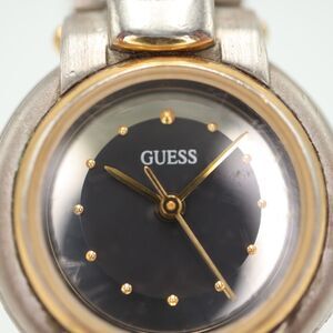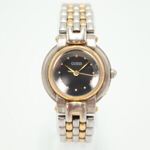 Vintage Guess Womens Two Tone Watch 25mm Black Mirror Dial 5.75" w New Battery