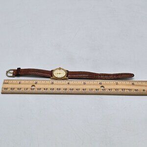 Vintage Guess Womens Watch With Brown Leather Strap Gold-Tone Case