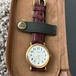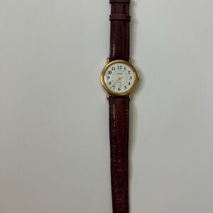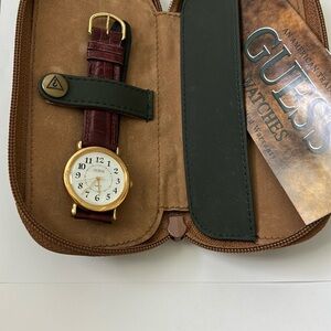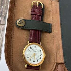 Vintage Guess Women's Watch with Gold Accents and a Burgundy Leather Band w/case