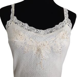 Vintage Guess Y2K Beaded Camisole Cream Sheer Lace Womens S Bohemian Cowgirl