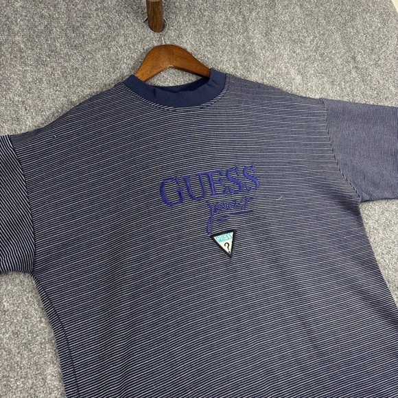 Keywords: Guess, Georges Marciano, Vintage, T-Shirt, Striped, Logo, Menswear, One Size, Short Sleeve, Cotton, Crew Neck, Retro, 90s