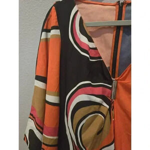 Elevate your wardrobe with this stunning Guess by Marciano batwing poncho, a perfect blend of style and comfort. The multicolor abstract pattern and silky material create a vibrant look, while the V-neckline and 3/4 sleeves add a touch of elegance. Ideal for party or cocktail occasions, this top ensures you stand out with its lightweight and comfortable design. The convenient zip closure makes it easy to wear. This pre-owned piece is in excellent condition, ready to make your next event unforgettable.