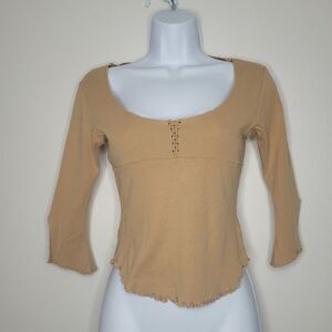 Vintage Guess tan y2k preppy western 3/4 sleeve slight crop top size small