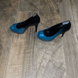 Vintage Guess two toned 4.5” stilettos peep toe pumps