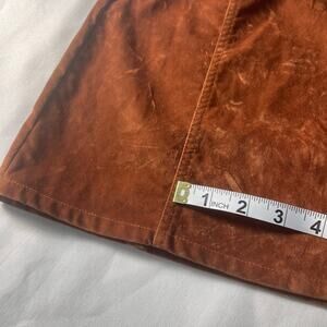 This vintage Guess mini skirt is a stylish addition to any wardrobe. The soft, velvety material and rich rust brown color make it perfect for a retro-chic look.