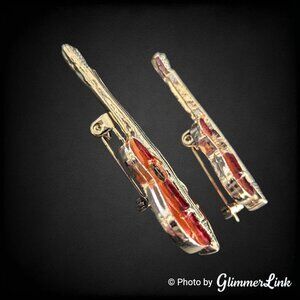 Vintage Guitar Copper Enamel Gold Tone Brooches Set of 2 – Musician Gift