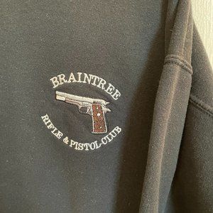 This is a vintage Braintree, Massachusetts. Gun club Crewneck Sweater from the Braintree Pistol and Rifle Club.