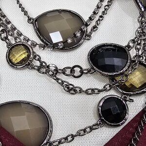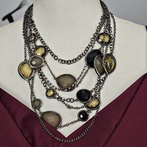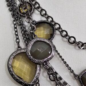 🏆Vintage Gun Metal Retro Faceted Citrine Quartz Multi Strand Statement Necklace