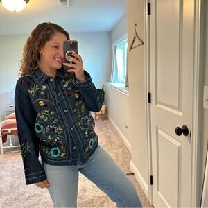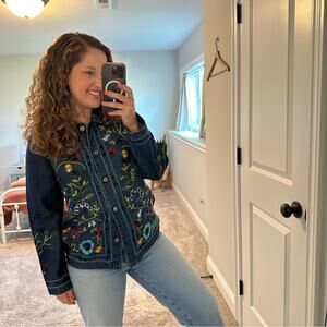 I adore this super pretty vintage Guni denim florla embroidered button front unique piece of art jacket/top